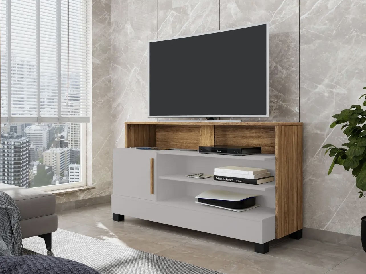 ✅ Funcionalidade Completa – Conta com 1 porta basculante com dobradiças soft-close, 2 nichos e 2 prateleiras, oferecendo praticidade e organização para eletrônicos e decoração.